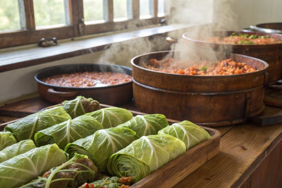 Tureckie gołąbki z kapustą, znane lokalnie jako sarma lub lahana sarması, stanowią fundamentalny element tureckiej tradycji kulinarnej, sięgającej czasów Imperium Osmańskiego. W przeciwieństwie do innych wariantów śródziemnomorskich, tureckie gołąbki charakteryzują się wyjątkowym połączeniem przypraw, gdzie dominuje sumak, mięta oraz czarny pieprz. Tradycyjnie przygotowywane na specjalne okazje rodzinne, symbolizują gościnność i wspólnotę. Historycznie, danie to ewoluowało z kuchni pałacowej do domowej, stając się nieodłącznym elementem świąt religijnych, szczególnie podczas Ramadanu i Kurban Bayram.