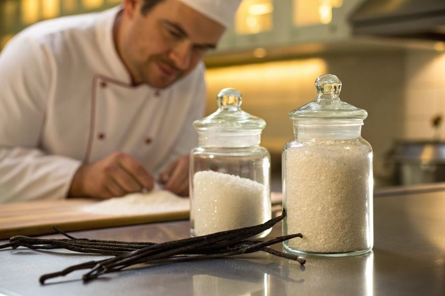 Cukier wanilinowy to produkt składający się z białego cukru (sacharozy) z dodatkiem etylowaniliny – syntetycznego związku aromatycznego. Jest to substancja, która naśladuje zapach naturalnej wanilii, ale ma silniejszy aromat. W przeciwieństwie do niego, cukier waniliowy zawiera prawdziwą wanilinę pozyskiwaną z lasek wanilii (strąków rośliny Vanilla planifolia). Ta fundamentalna różnica wpływa zarówno na smak, jak i cenę produktów – cukier waniliowy jest znacznie droższy ze względu na koszt naturalnych składników.
