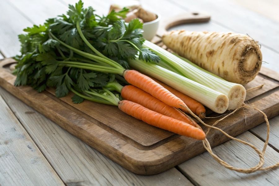 • Pietruszka (korzeń) – dostarcza intensywnego aromatu i głębi smaku