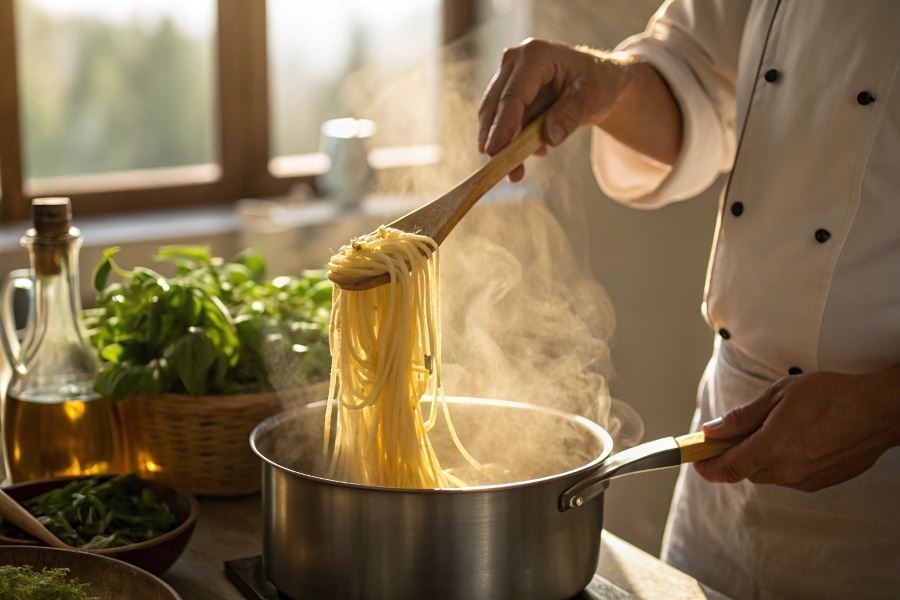 W zupach i bulionach vermicelli dodajemy na 1-2 minuty przed końcem gotowania. Do klasycznego pho używamy ryżowego vermicelli, który doskonale łączy się z aromatycznym bulionem. W przypadku tajskiej zupy Tom Yum vermicelli wkładamy bezpośrednio do gotowej zupy, pozwalając mu delikatnie dojść w gorącym płynie.