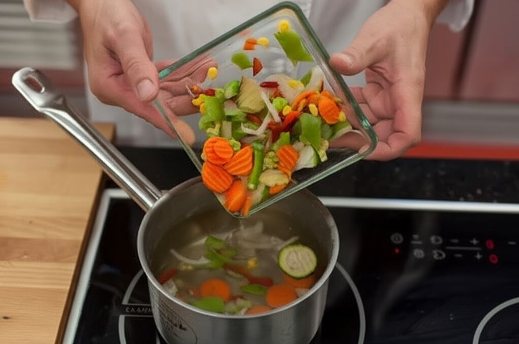 Warzywa gotuj przez 1 minutę. Następnie odcedź je z wody.
