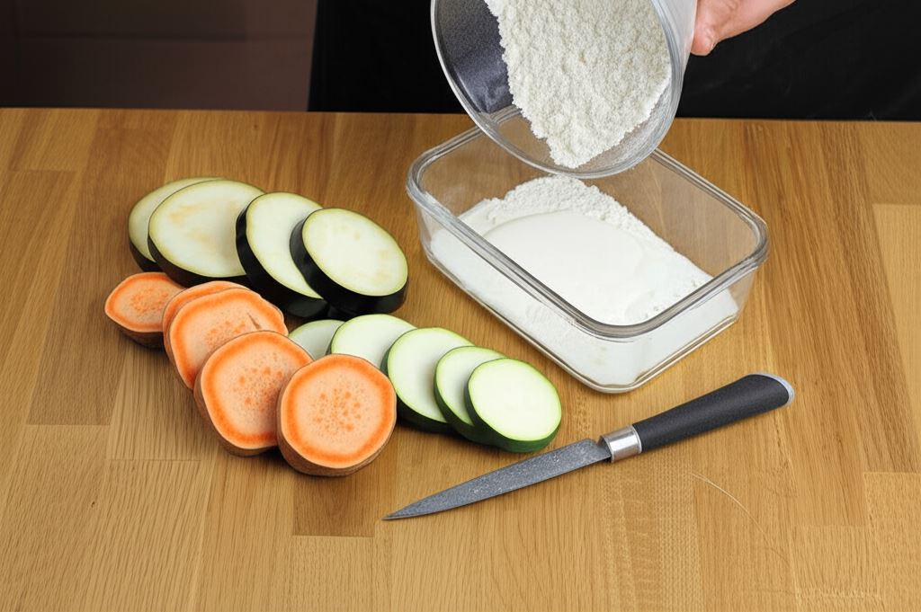 Połącz mleko z mąką, warzywa potnij na grube plastry.
