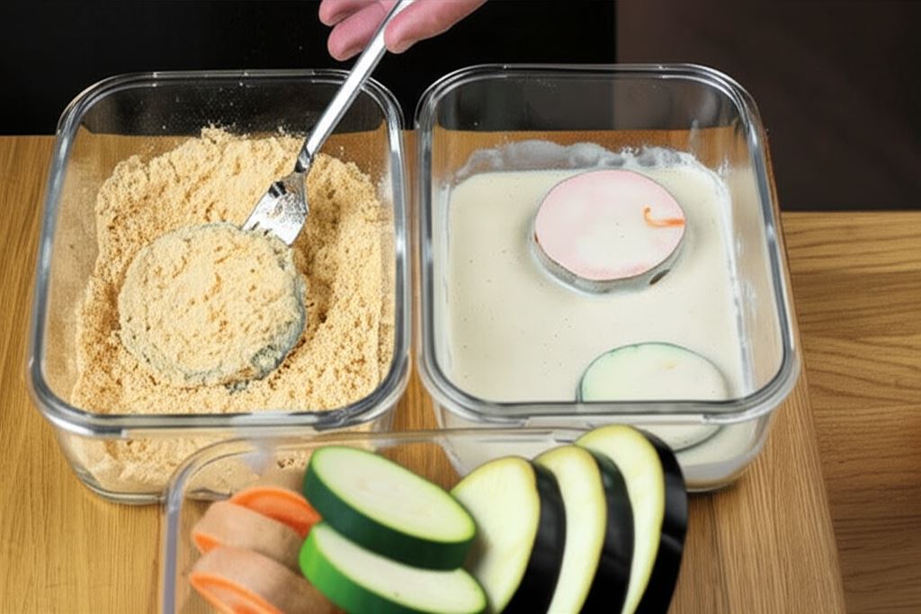 Sekret idealnych warzyw w panierce tkwi w odpowiednim czasie pieczenia. Pilnuj, aby panierka nabrała złocistego koloru, ale uważaj, by nie przypalić warzyw. Dzięki temu zachowają one idealną chrupkość na zewnątrz i delikatność w środku, tworząc niepowtarzalne połączenie tekstur.