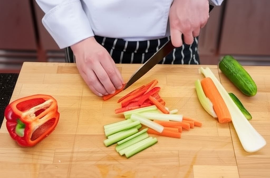 Podczas przygotowywania warzywnych sticksów warto szczególną uwagę poświęcić selerowi naciowemu, który należy dokładnie oczyścić z włókien. Marchewki, ze względu na swoją twardość, mogą stanowić wyzwanie podczas krojenia – użyj ostrego noża i zachowaj ostrożność.