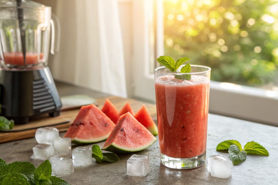 Orzeźwiające smoothie arbuzowo-cytrusowe wprowadza dodatkowy wymiar świeżości. Sok z limonki i cytryny doskonale podkreśla słodycz arbuza, jednocześnie dodając napojowi witaminy C. Blendery z regulacją prędkości obrotów pozwalają najpierw delikatnie zmiksować miąższ arbuza, a następnie na wyższych obrotach dokładnie połączyć go z cytrusami.