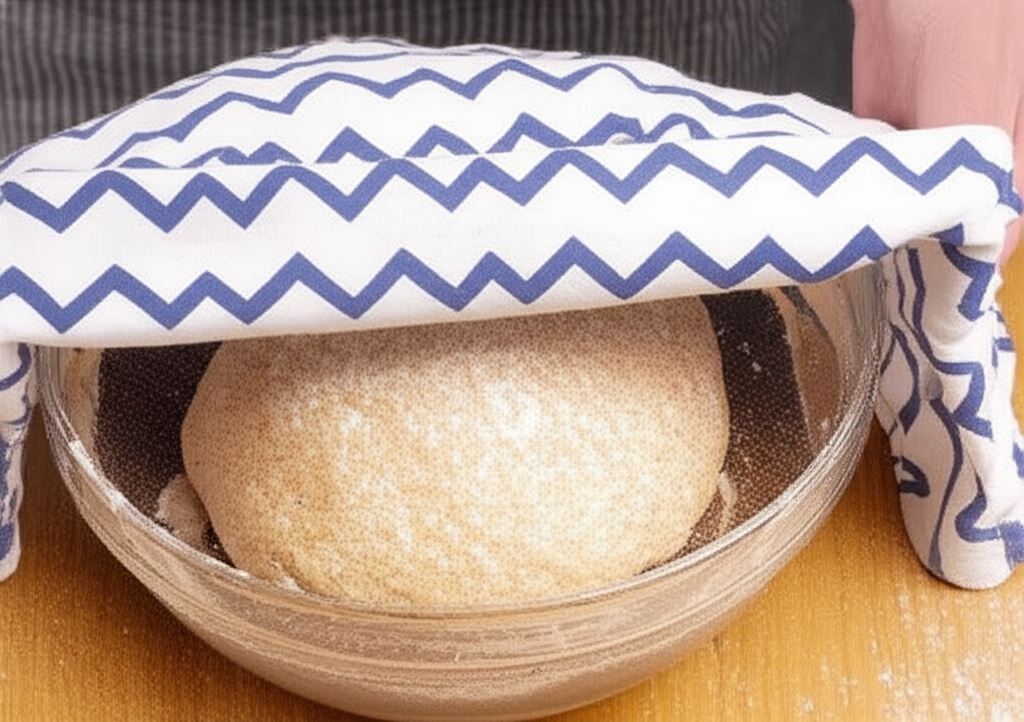 Tak przygotowane ciasto odłóż na około 20 minut w ciepłe miejsce, nakrywając miseczkę czystą ściereczką, aby urosło.