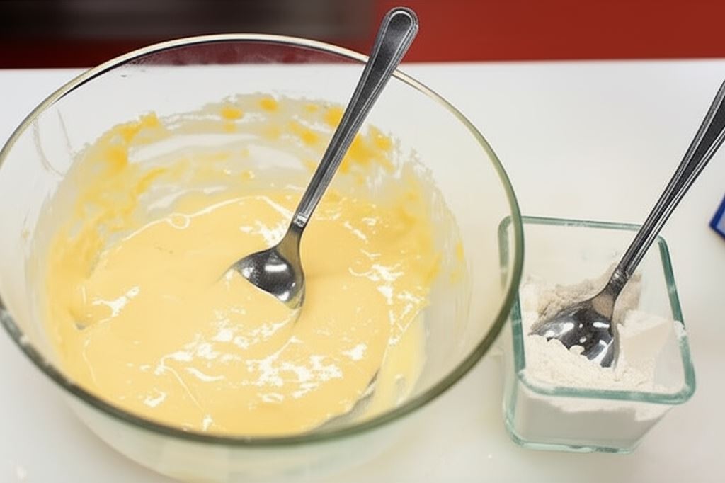 W naczyniu wymieszaj jajka z mąką. Powinna utworzyć się jednolita masa.