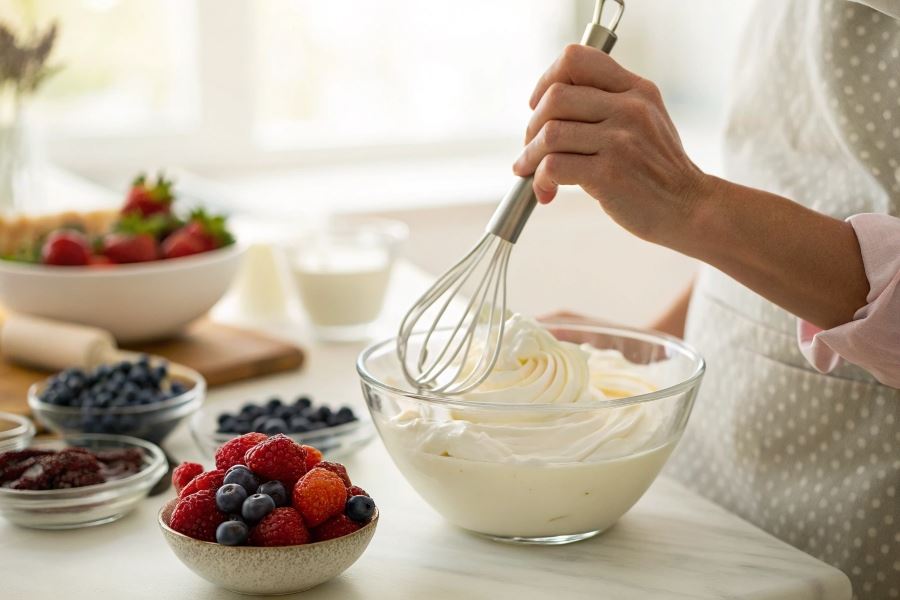 Ubijanie śmietany bez miksera wymaga więcej czasu i wysiłku, ale daje większą kontrolę nad procesem i pozwala uzyskać delikatniejszą konsystencję, idealną do wykończenia deserów.