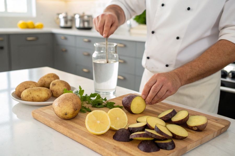Ziemniaki ciemnieją z powodu utleniania się zawartych w nich związków fenolowych, które w kontakcie z tlenem tworzą melaninę. Najskuteczniejsze metody zapobiegania temu procesowi opierają się na ograniczeniu dostępu tlenu lub neutralizacji enzymów odpowiedzialnych za reakcje utleniania: