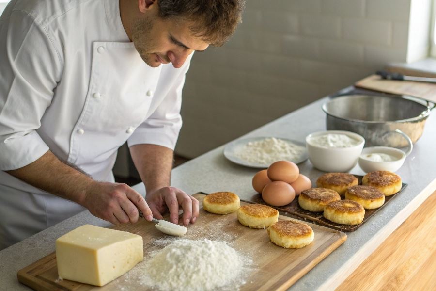 Smażenie syrników na rozgrzanym oleju roślinnym z dodatkiem masła klarowanego (proporcja 2:1) zapobiega przywieraniu i zapewnia złocistą skórkę. Temperatura powinna być średnia – zbyt wysoka spowoduje przypalenie zewnętrznej warstwy, podczas gdy wnętrze pozostanie surowe.