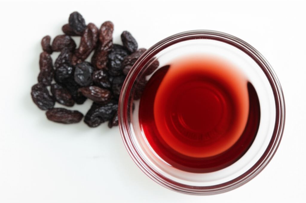 Rodzynki zalewamy trunkiem w miseczce. Kiedy napęcznieją umieszczamy je na sitku aby odciekły.
