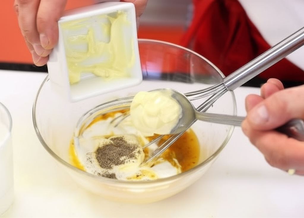 Potem Bulion na włoszczyźnie Knorr połącz z jogurtem, Majonezem Babuni Hellmann's oraz pieprzem. Starannie wymieszaj.
