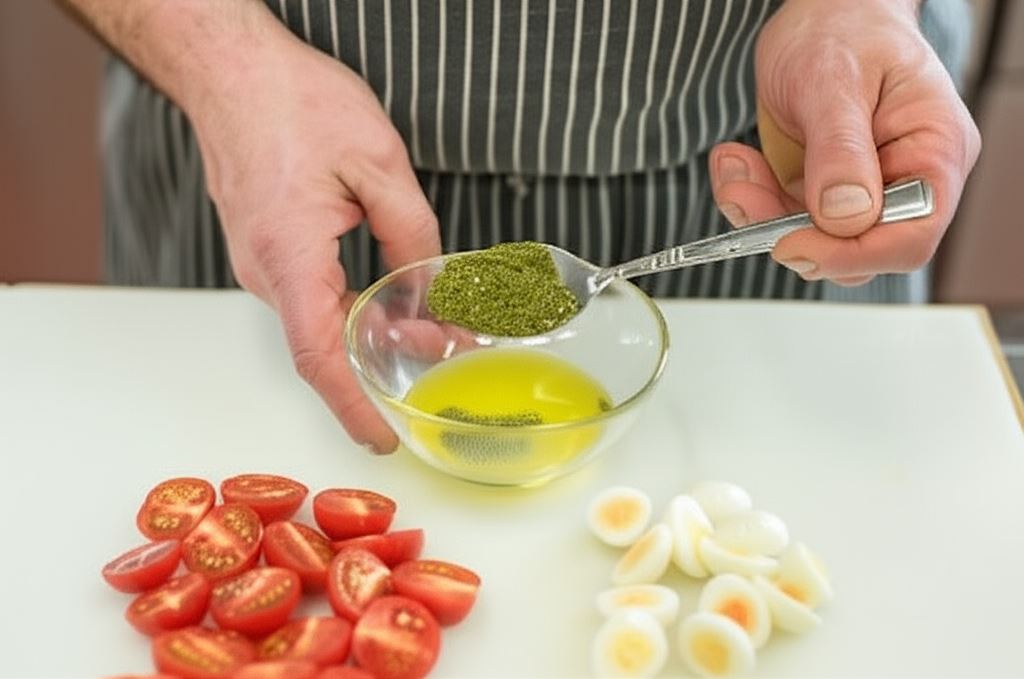 Delikatna, aromatyczna i pełna świeżych smaków – wiosenna sałatka z jajkiem i wędzonym łososiem to prawdziwa uczta dla podniebienia. Soczyste pomidorki koktajlowe, chrupiące liście sałaty i kiełki słonecznika tworzą doskonałą bazę dla delikatnie uwędzonego łososia i kremowych jajek. Całość skropiona orzeźwiającym sosem z nutą limonki tworzy harmonijne połączenie, które zachwyci nawet najbardziej wymagających smakoszy.