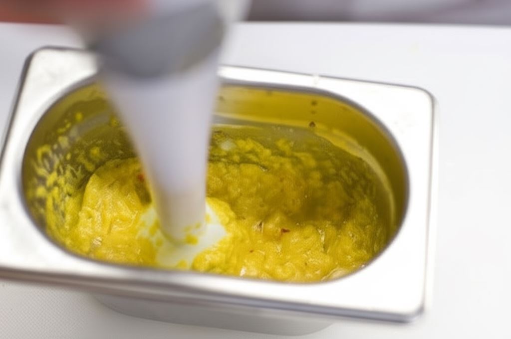 Do miseczki wrzuć czosnek, posiekane cebule oraz chili, imbir i kurkumę. Całość zmiksuj.