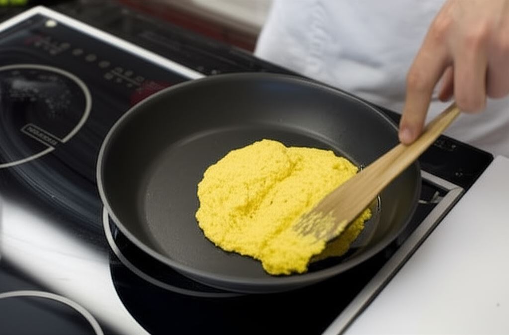 Wrzuć pastę na rozgrzany olej i smaż przez 10 minut.