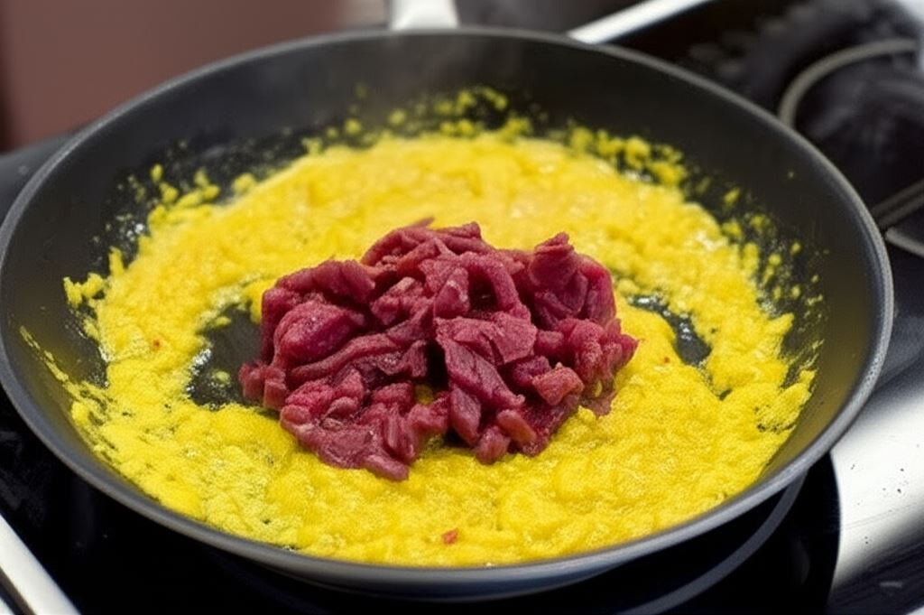 Potem dodaj mięso. Wszystko smaż przez około 10 minut.