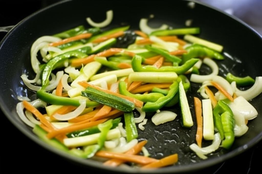 Do tego samego tłuszczu dodaj warzywa, podsmażaj moment.