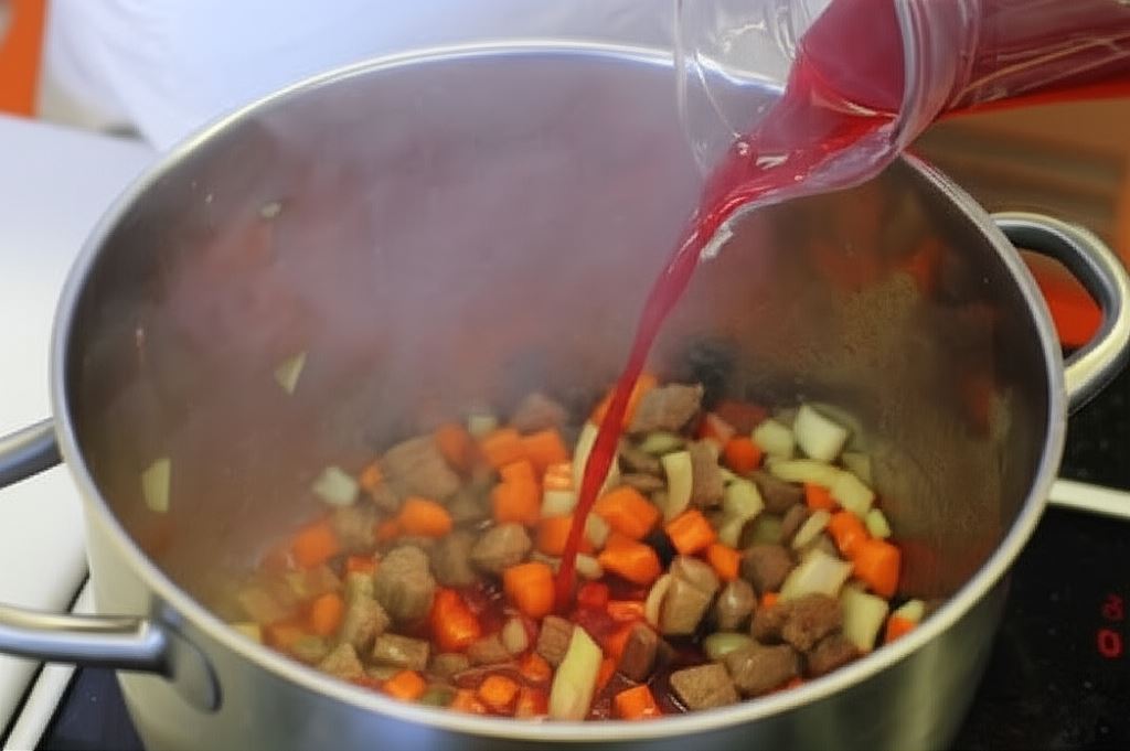Teraz dodaj wino i gotuj, aż 1/3 odparuje.