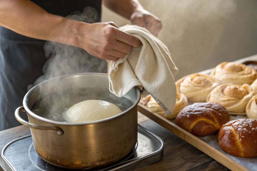 Zawijanie w wilgotną ściereczkę to klasyczna metoda stosowana przez doświadczonych piekarzy. Należy lekko zwilżyć czystą bawełnianą ściereczkę, owinąć nią ciasto i pozostawić na 15-20 minut. Wilgoć stopniowo przeniknie do struktury ciasta, przywracając mu elastyczność bez nadmiernego namoczenia.