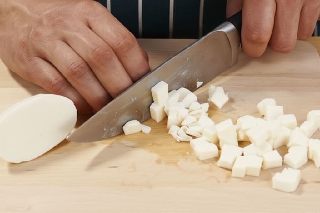 Mozzarellę odsącz, potnij w kostkę i dorzuć do mięsa. Całość starannie wymieszaj.
