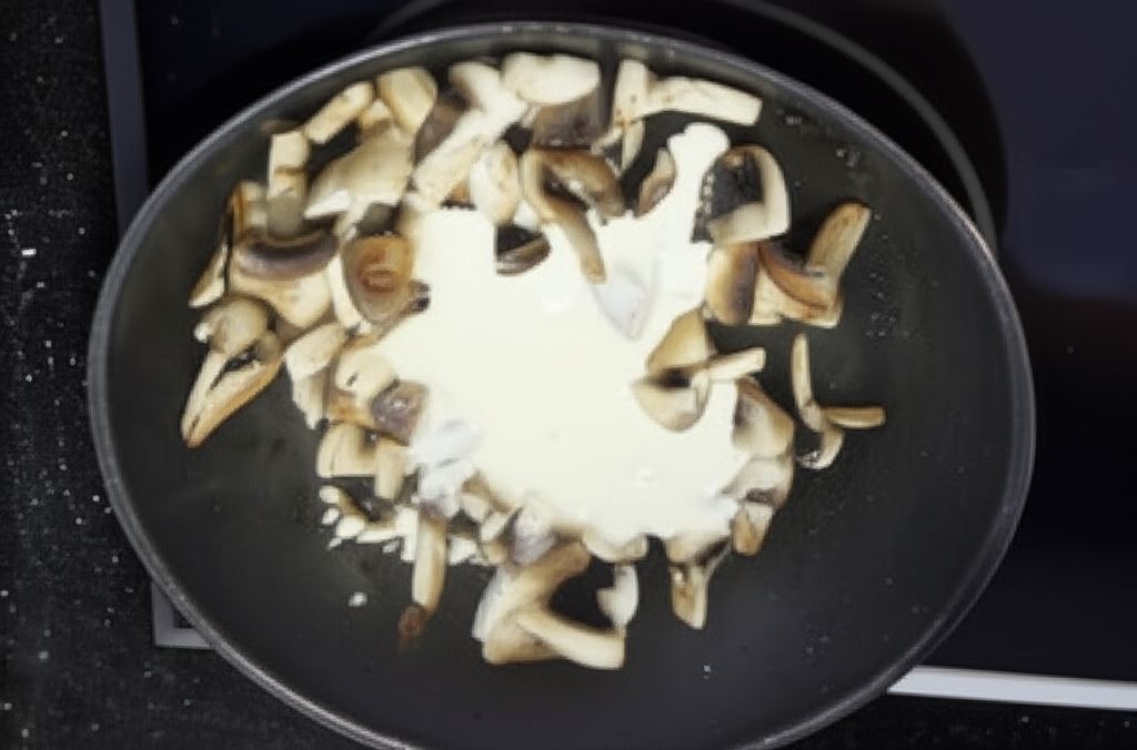 Sos Knorr połącz ze śmietaną i zalej nim pieczarki. Następnie zagotuj.