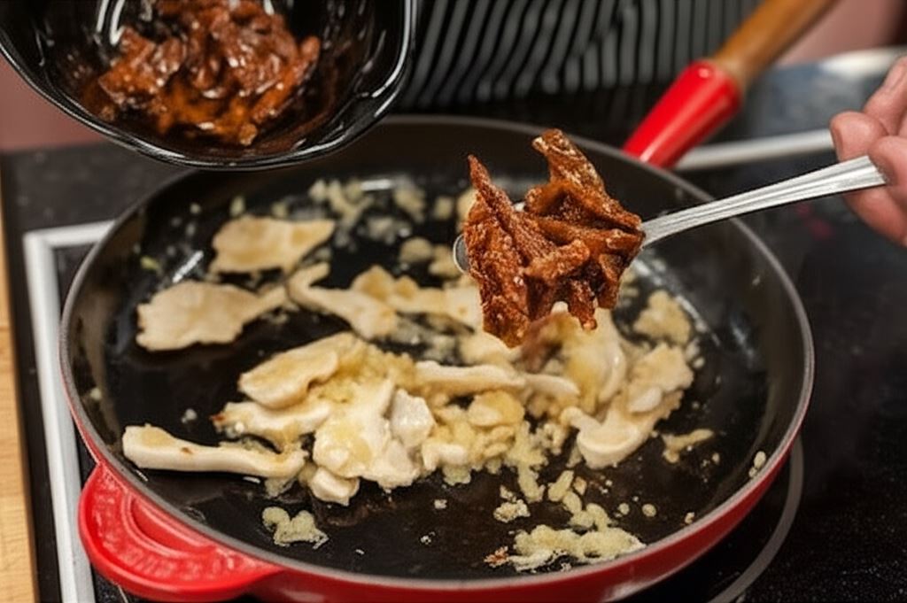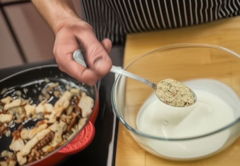 Zawartość saszetki Knorr wymieszaj ze śmietaną i dodaj na patelnię. Sos doprowadź do wrzenia, zredukuj ogień i gotuj przez 3 minuty.