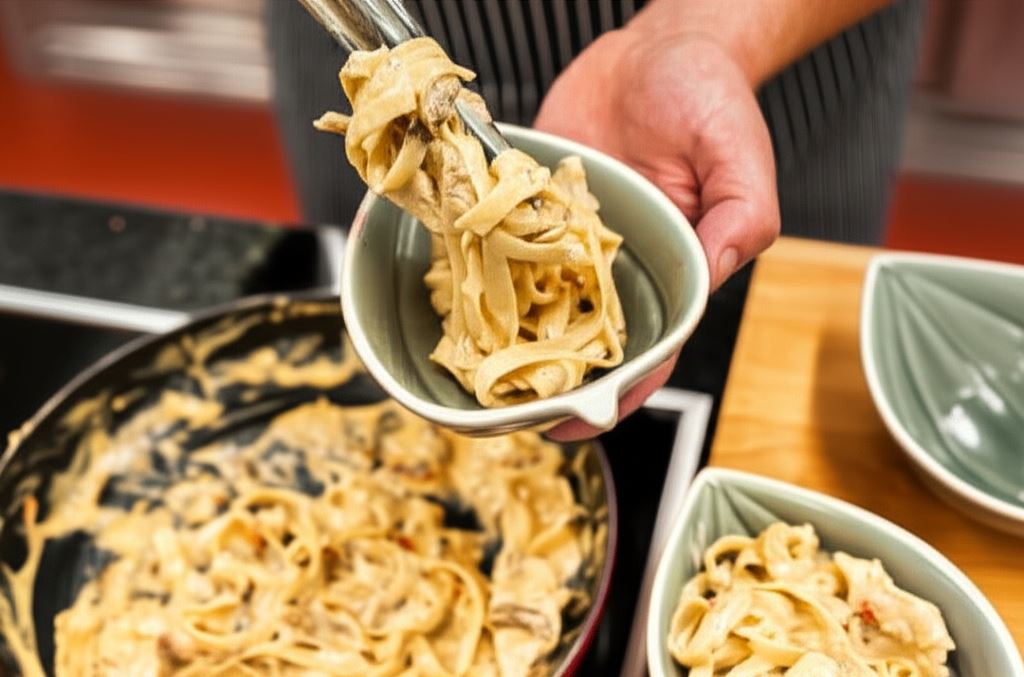 Danie idealnie sprawdzi się zarówno dla miłośników klasycznej kuchni włoskiej, jak i dla osób poszukujących nowych, ciekawych połączeń smakowych. To propozycja dla całej rodziny – dzieci pokochają kremowy makaron, a dorośli docenią harmonię smaków i elegancką prezentację z jajkiem na wierzchu.