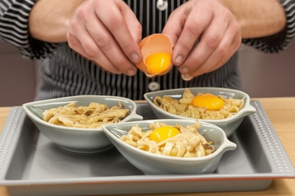 Szukasz pomysłu na efektowne danie, które zachwyci nie tylko smakiem, ale i wyglądem? Zapiekane tagliatelle z kurczakiem, jajkiem i szczypiorem to propozycja, która łączy w sobie kremowy sos, delikatne mięso i aksamitne jajko zapieczone na wierzchu. Każda porcja serwowana w indywidualnym naczyniu żaroodpornym staje się małym kulinarnym dziełem sztuki!