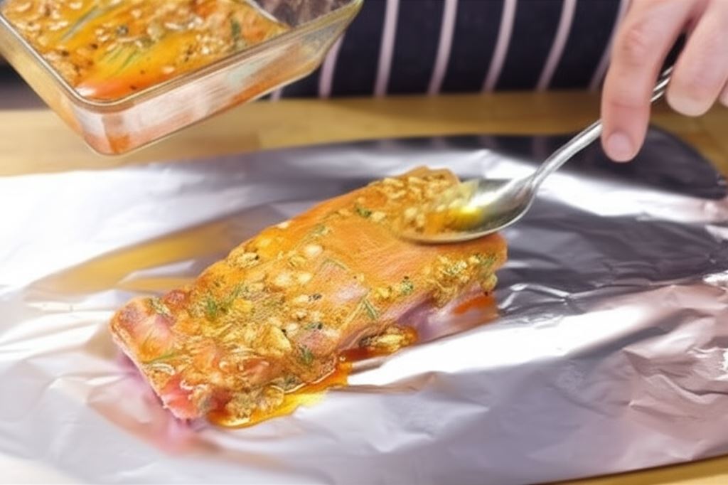 Sporządzoną marynatą natrzyj żeberka, owiń w folię aluminiową i odstaw w zimne miejsce na 30 minut.