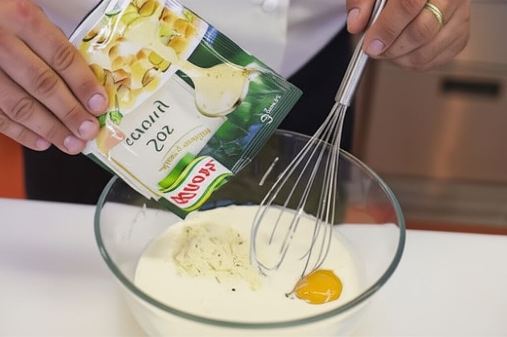 Wymieszaj Fix Spaghetti 4 sery z brokułami Knorr z śmietaną, zgodnie z proporcjami wskazanymi na opakowaniu.