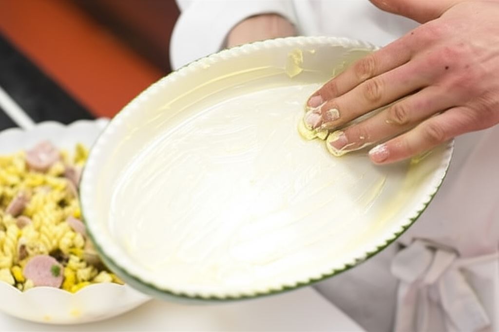 Nasmaruj tłuszczem naczynie żaroodporne i umieść w nim przygotowaną masę.