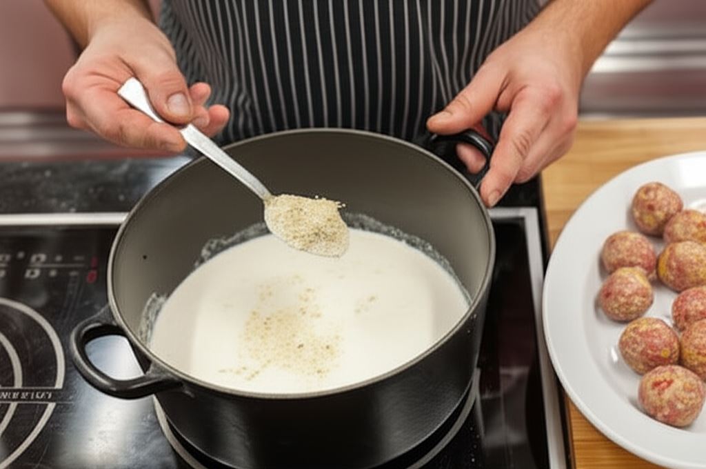 W małym garnku połącz zawartość opakowania Knorr z wodą i śmietaną – gotuj przez 1 minutę.