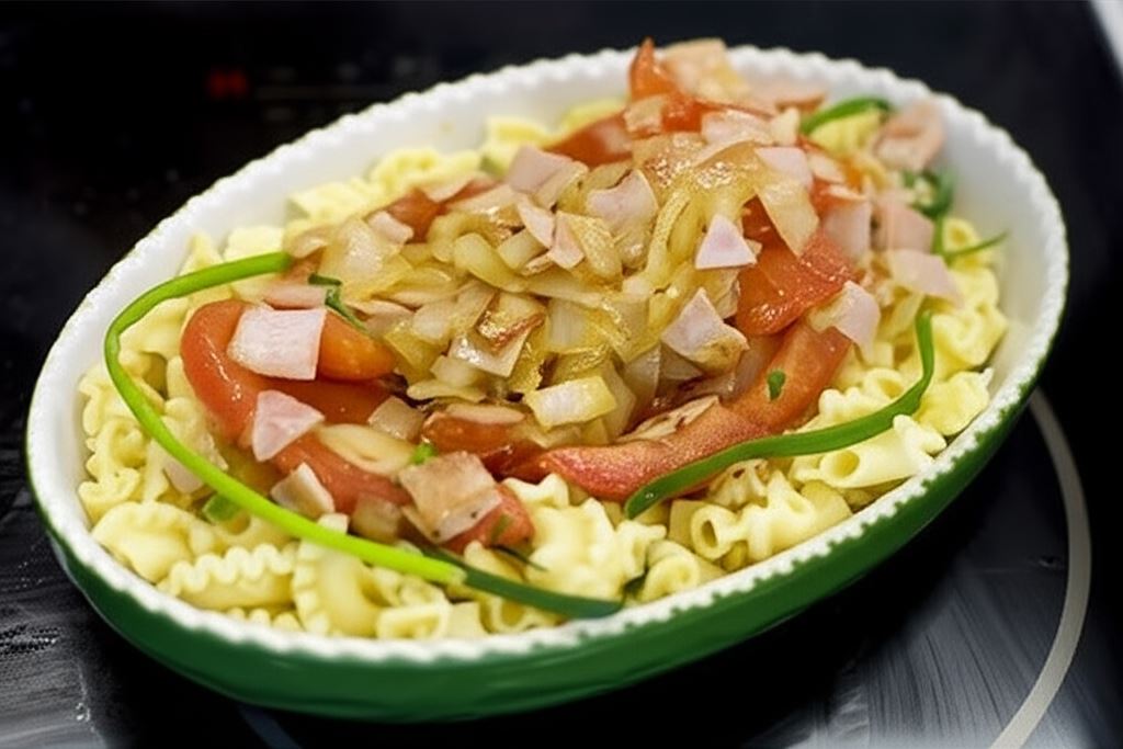 Zapiekanka makaronowa to prawdziwy kulinarny przebój, który łączy w sobie prostotę przygotowania z wyrazistym smakiem. Makaron ugotowany al dente, połączony z soczystą szynką, aromatyczną cebulą i dojrzałymi pomidorami tworzy harmonijną kompozycję, która zadowoli nawet najbardziej wymagające podniebienia.