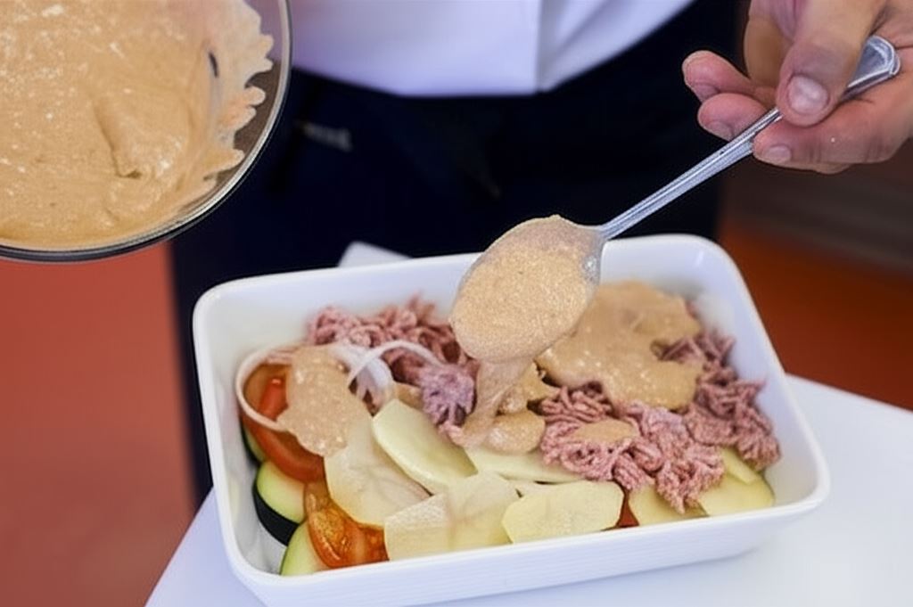 Sekret idealnej zapiekanki tkwi w odpowiednim ułożeniu warstw. Cienkie plastry warzyw zapewniają równomierne pieczenie, a sos Fix Knorr rozrobiony ze śmietaną i jajkiem nadaje całości kremowej konsystencji. Temperatura 200°C to klucz do uzyskania idealnie zapieczonego, złocistego wierzchu.