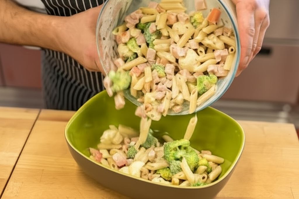 Zapiekanka z szynką i warzywami to prawdziwy kulinarny pewniak! Delikatny makaron, chrupiące warzywa, aromatyczna szynka i rozpływający się ser tworzą kompozycję, która zadowoli nawet najbardziej wymagające podniebienia. Przygotowanie jest proste – wystarczy ugotować makaron, pokroić szynkę i pomidory w kostkę, zblanszować brokuły i kalafiora, a następnie połączyć wszystko z mieszanką Fixu Knorr, jajka i śmietany. Całość zapiekamy w piekarniku pod przykryciem z folii aluminiowej, a na 10 minut przed końcem pieczenia zdejmujemy folię, by ser pięknie się zarumienił.