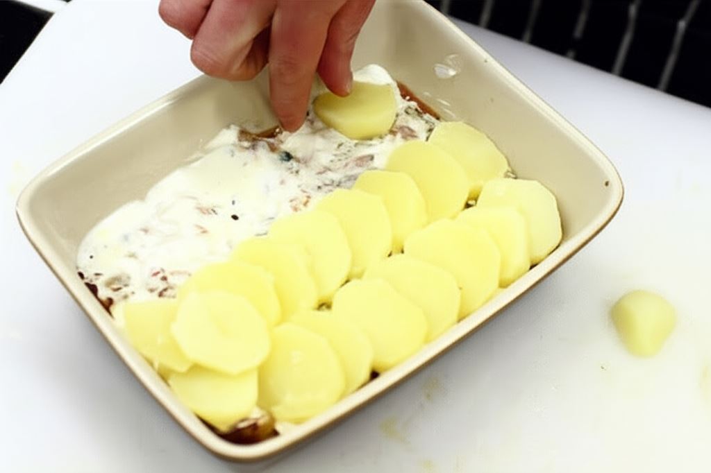 Domowa zapiekanka ziemniaczana z kurczakiem i boczkiem