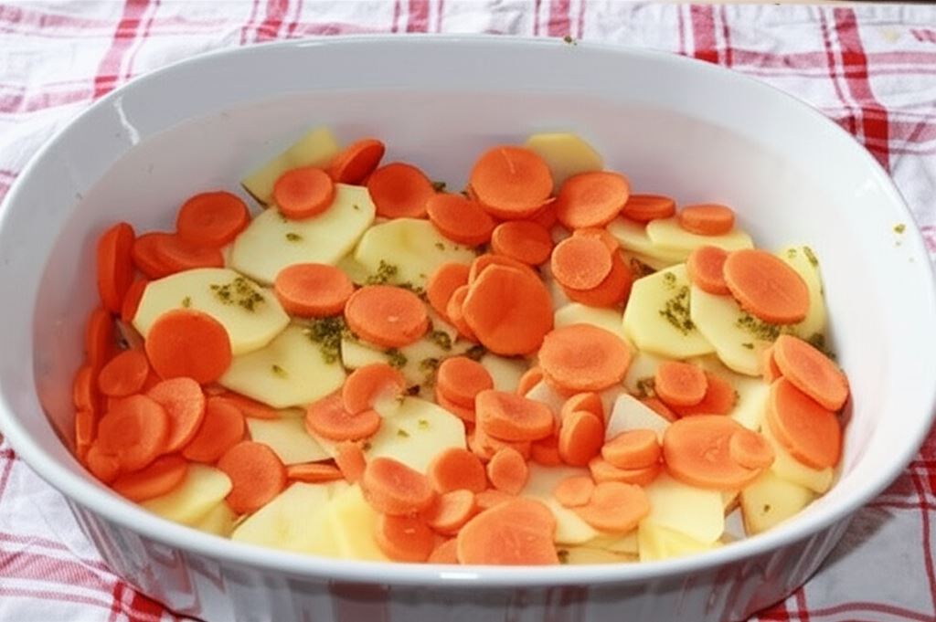 Aromatyczna zapiekanka ziemniaczana z soczystym kurczakiem to prawdziwy domowy klasyk w nowoczesnym wydaniu. Połączenie delikatnego mięsa z chrupiącymi ziemniakami i słodką marchewką tworzy harmonijną kompozycję smaków, która rozgrzeje każde podniebienie.