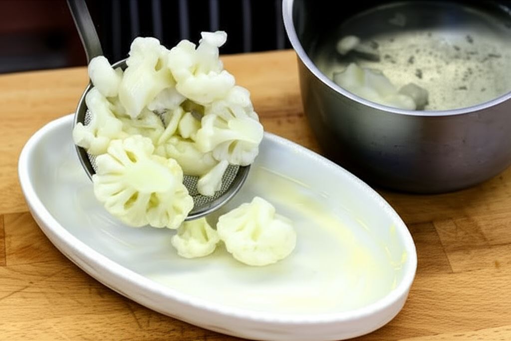 Kalafiora odcedź i umieść w naczyniu żaroodpornym posmarowanym masłem.