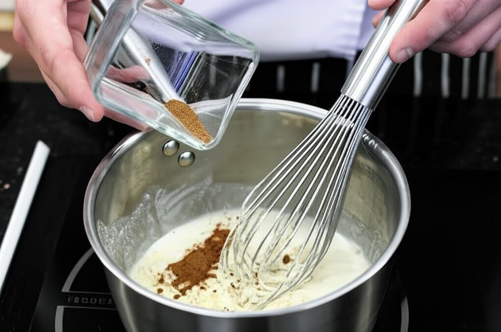 Sos Knorr połącz ze śmietanką i gałką muszkatołową. Potem doprowadź go do wrzenia.