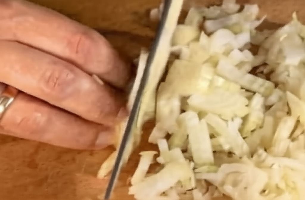 Posiekaj cebulę i czosnek na drobną kostkę.