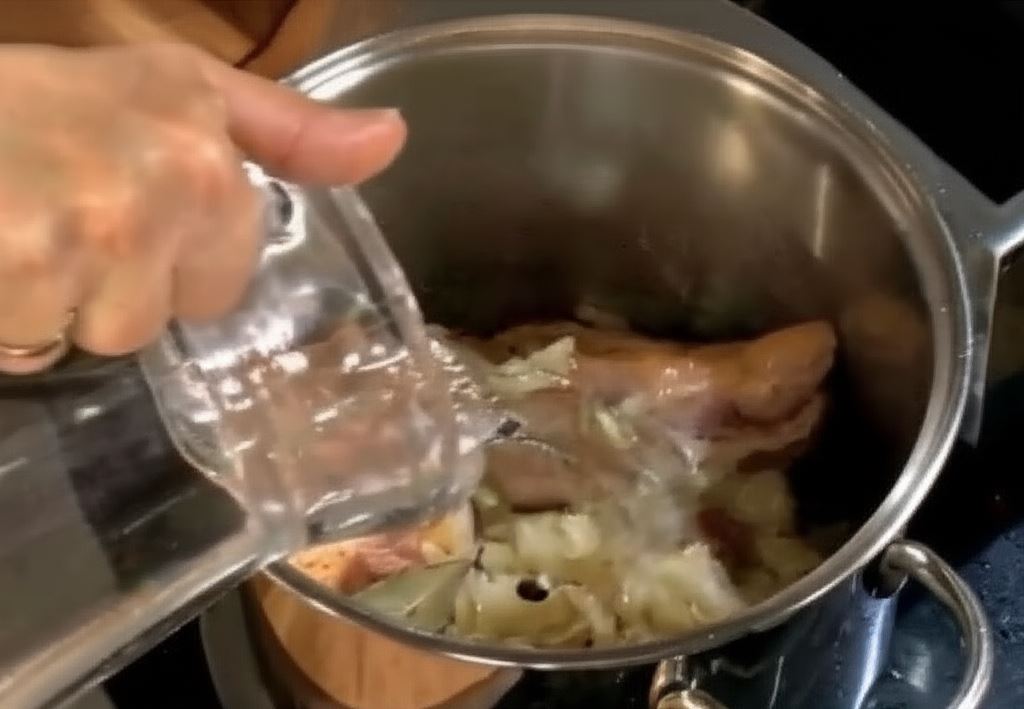 Przełóż wszystko do garnka. Dodaj przyprawy i kostki pieczeniowe Knorr. Wlej ok. 1 litr wody. Duś pod przykryciem ok. 50 minut.