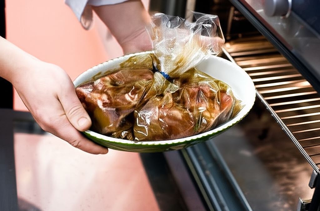 Piecz w rozgrzanym do 180°C piekarniku przez 60 minut, następnie przetnij woreczek i dopiekaj żeberka jeszcze przez 10 minut, aby uzyskały bardziej chrupiącą strukturę.