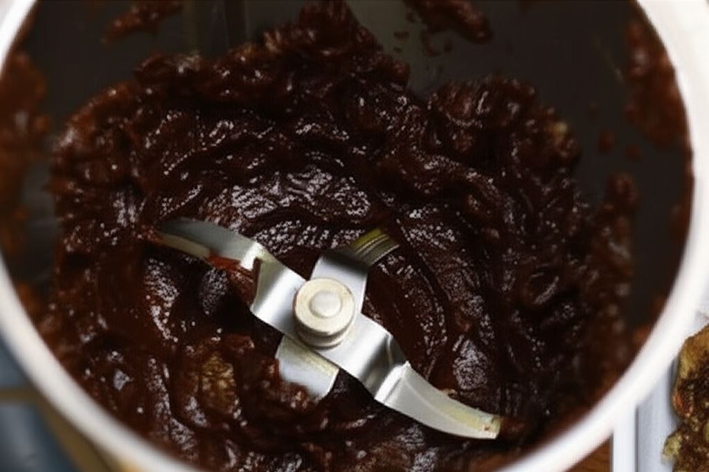 Gotuj te składniki przez kolejne 10 minut, dopóki nadmiar płynu nie wyparuje, a sos stanie się półgęsty, dodaj imbir, olej sezamowy, a następnie całość rozdrobnij w naczyniu miksera.
