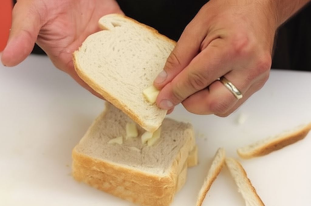 Umieść tosty na natłuszczonej blasze. Zapiekaj w piekarniku przez około 8 minut.