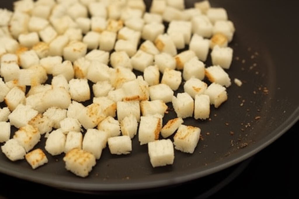 Zielone spaghetti z grzankami – klasyk w nowej odsłonie