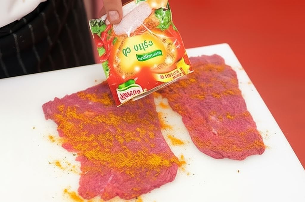 Mięso przeznaczone na zrazy wołowe pokrój wzdłuż włókien i delikatnie rozbij. Posyp obustronnie Przyprawą do mięs Knorr. Na jednej stronie rozsmaruj musztardę.