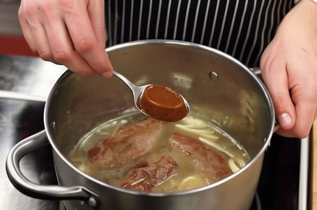 Wlej do garnka 500 ml wody, wsyp Sos do pieczeni jasny Knorr i zagotuj. Zredukuj ogień i duś zrazy, aż staną się miękkie – około 40 minut.