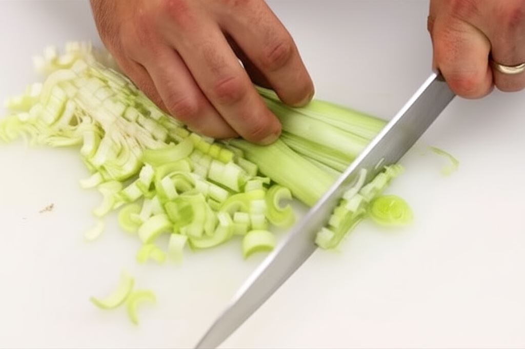 Przetnij pory wzdłuż, po czym pokrój je na paski.