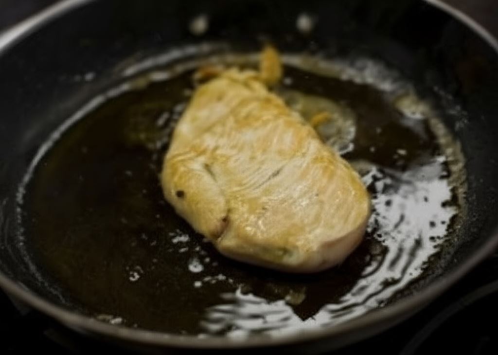 Podsmażaj pierś kurczaka na patelni z olejem sezamowym. Pozostaw do wystygnięcia i pokrój w kostkę.