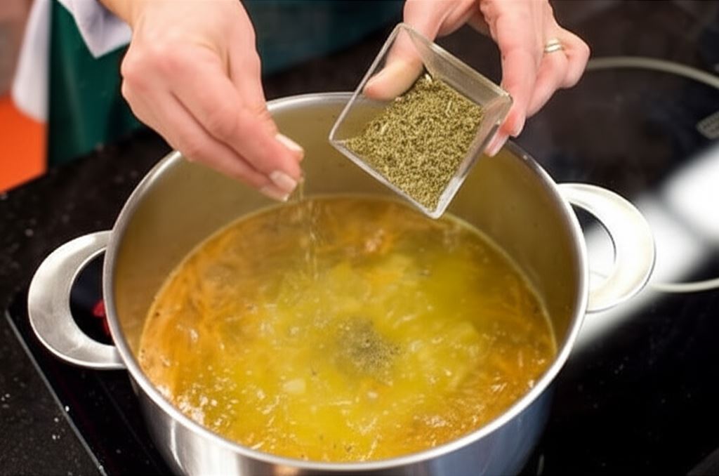 Przypraw zupę majerankiem, kminkiem i pieprzem według smaku.